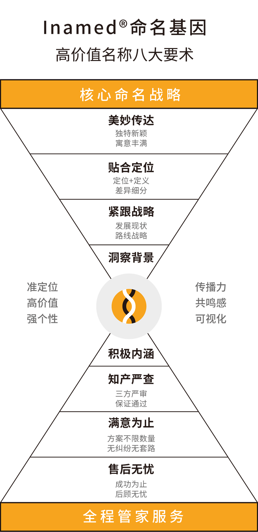 根據(jù)目標(biāo)群體需求特征以及品牌起名定位,通過字義、字音、字性等多種方法,創(chuàng)意命名方案;對名稱進行商標(biāo)注冊系統(tǒng)篩查等。